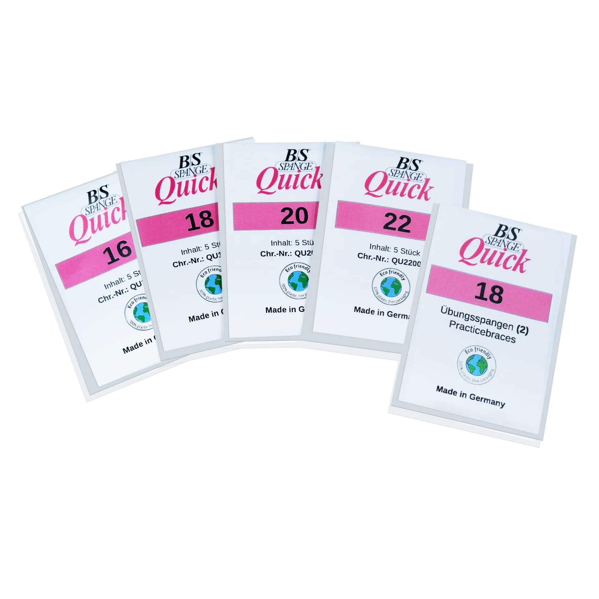 - Inhalt: 20 Spangen (je 5 pro Größe) und 2 Übungsspangen