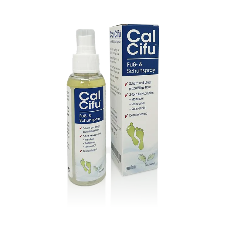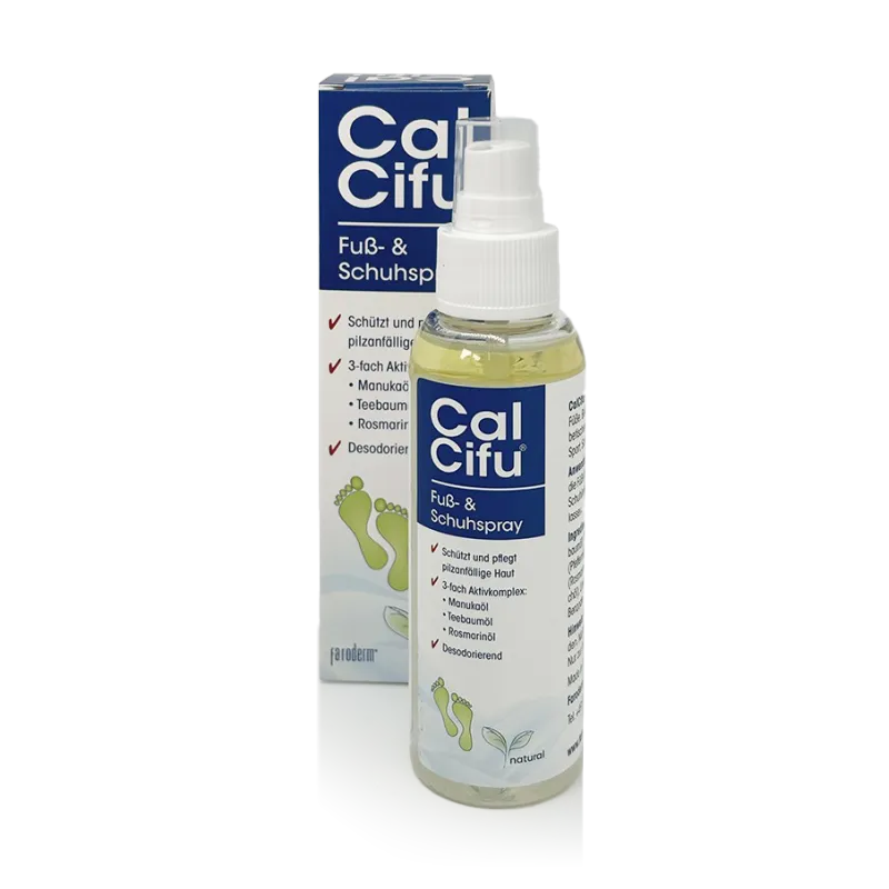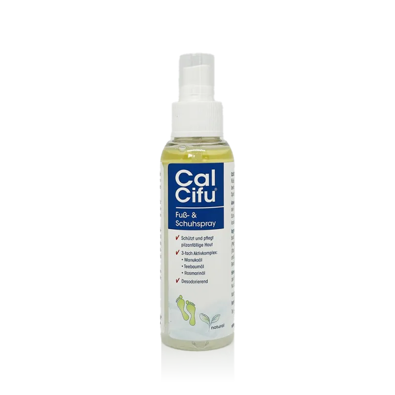 Das Calcifu Natural Fuß- und Schuhspray ist eine innovative Lösung zur Pflege und Erfrischung Ihrer Füße und Schuhe. Es kombiniert hochwertige natürliche Inhaltsstoffe, um eine effektive und sanfte Pflege zu gewährleisten. Das Spray ist speziell entwickelt, um den Anforderungen empfindlicher und pilzanfälliger Haut gerecht zu werden, und bietet gleichzeitig eine angenehme Frische für Ihre Schuhe.