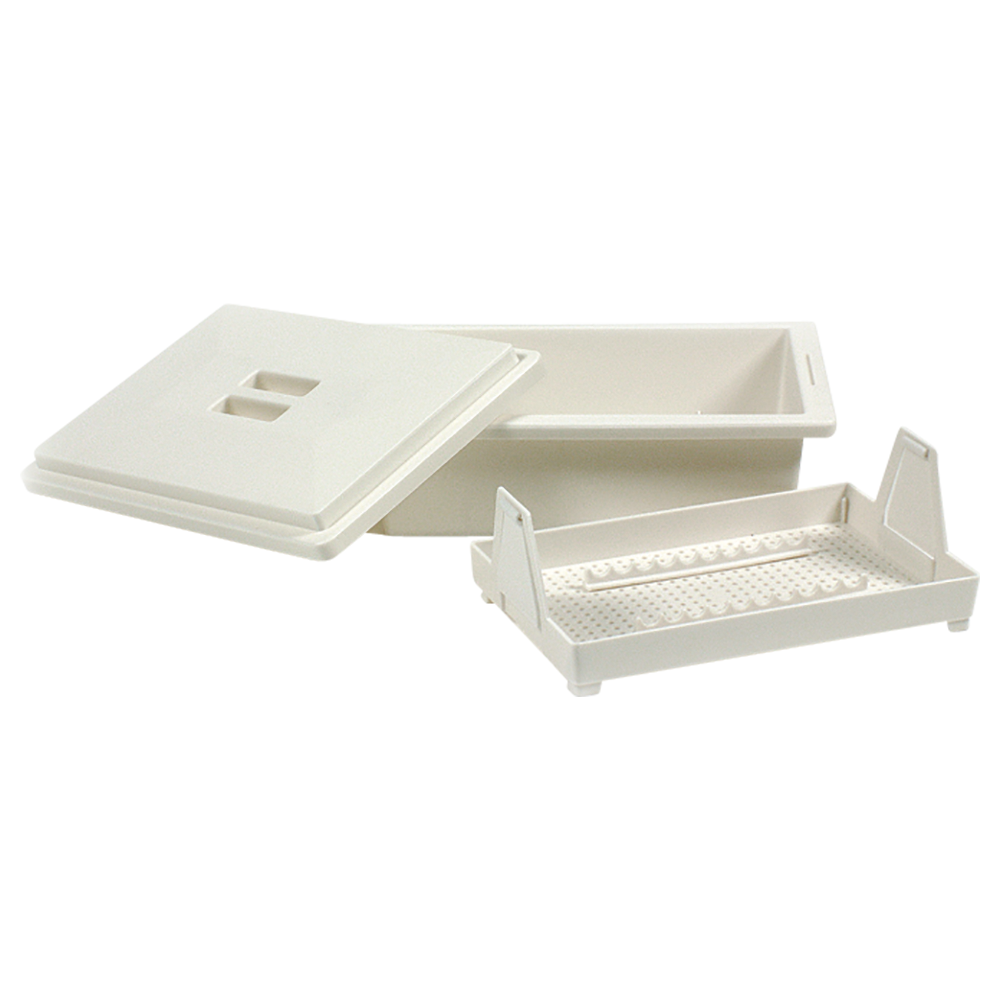 Die Desinfektionswanne dient zur manuellen Reinigung von Instrumenten. Mit ihrem großen Fassungsvermögen und dem praktischen Spritzschutz-Deckel ist sie optimal für Institute mit hoher Kundenfrequenz und einem entsprechend höheren Bedarf geeignet. Alle Teile sind aus stabilem, weißem Kunststoff gefertigt und zeigen eine hohe Resistenz gegen Desinfektions- und Reinigungsmittel aller Art.