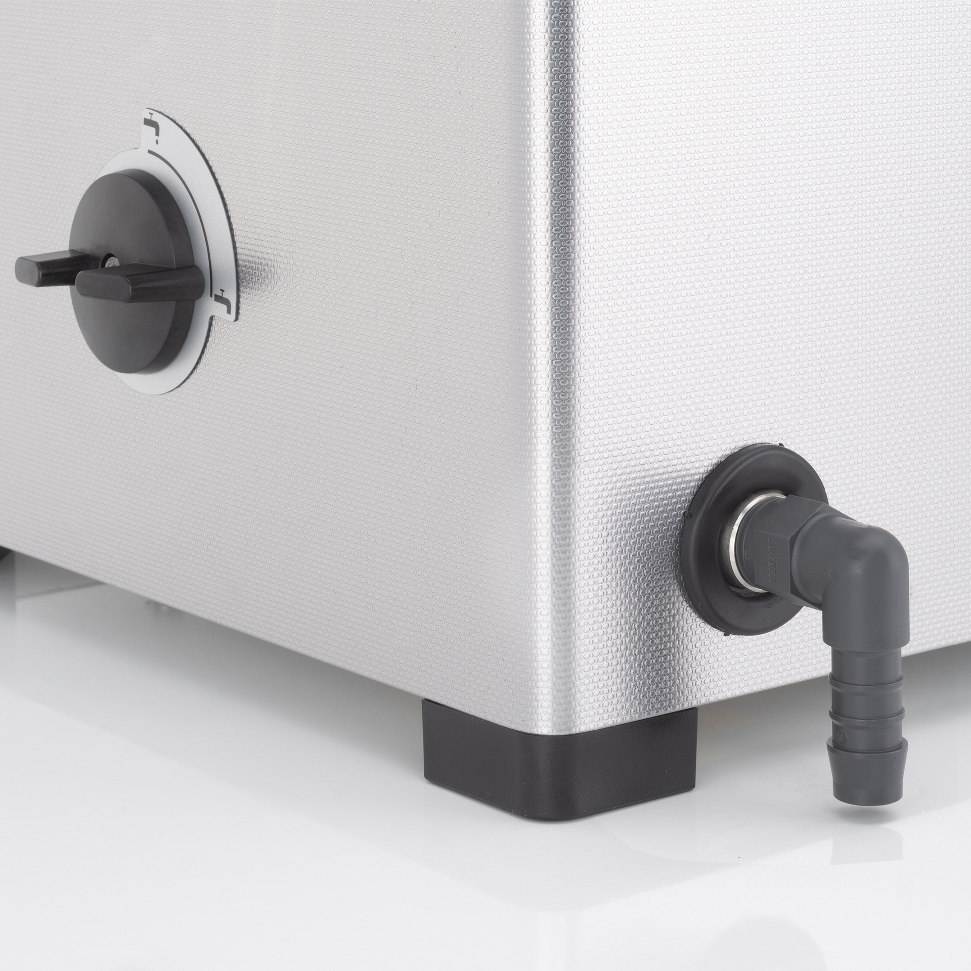 - Seitlicher Absperrhahn zur Entleerung der Reinigungswanne über den Ablauf an der Geräterückseite
