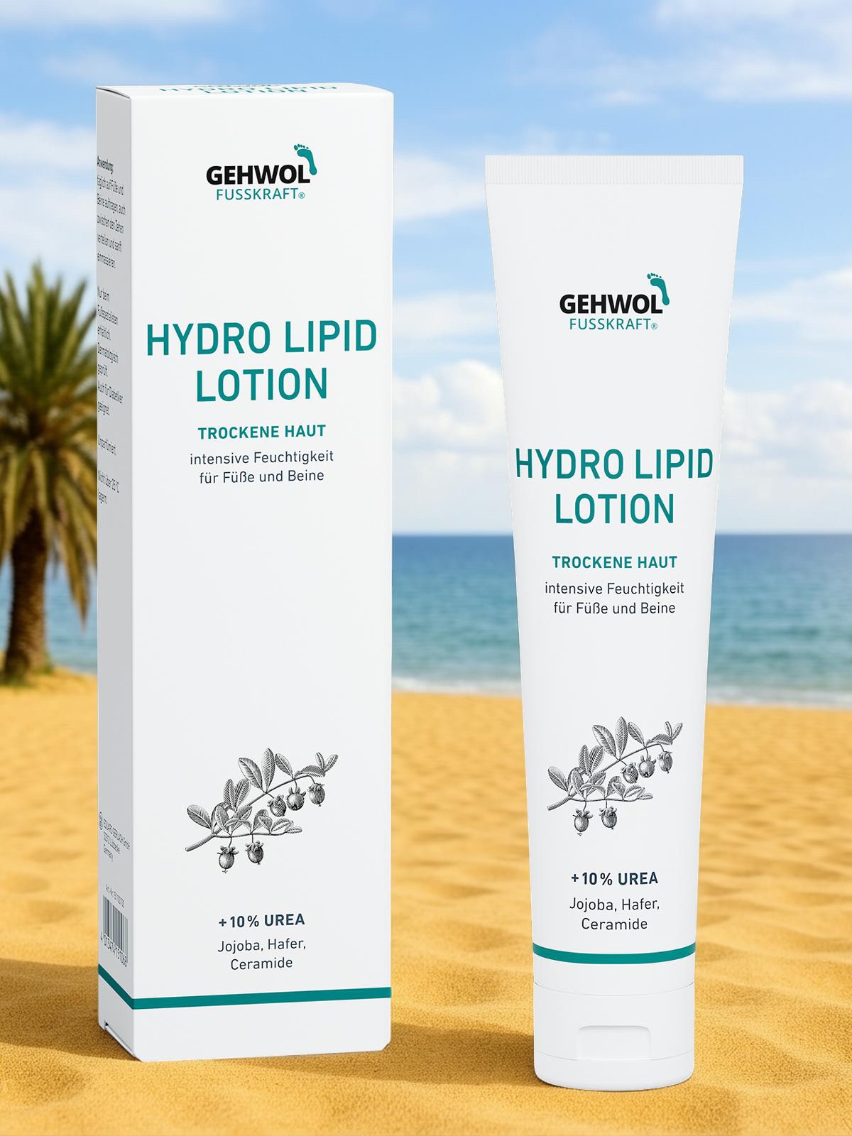 Die GEHWOL FUSSKRAFT Hydro Lipid Lotion enthält Ceramide, die die natürliche Hautbarriere stärken und vor Feuchtigkeitsverlust schützen. Ein weiterer Bestandteil der Lotion ist Farnesol, welches desodorierend wirkt und vor Fußpilz schützt. Die Lotion ist ausschließlich beim Fußspezialisten erhältlich.