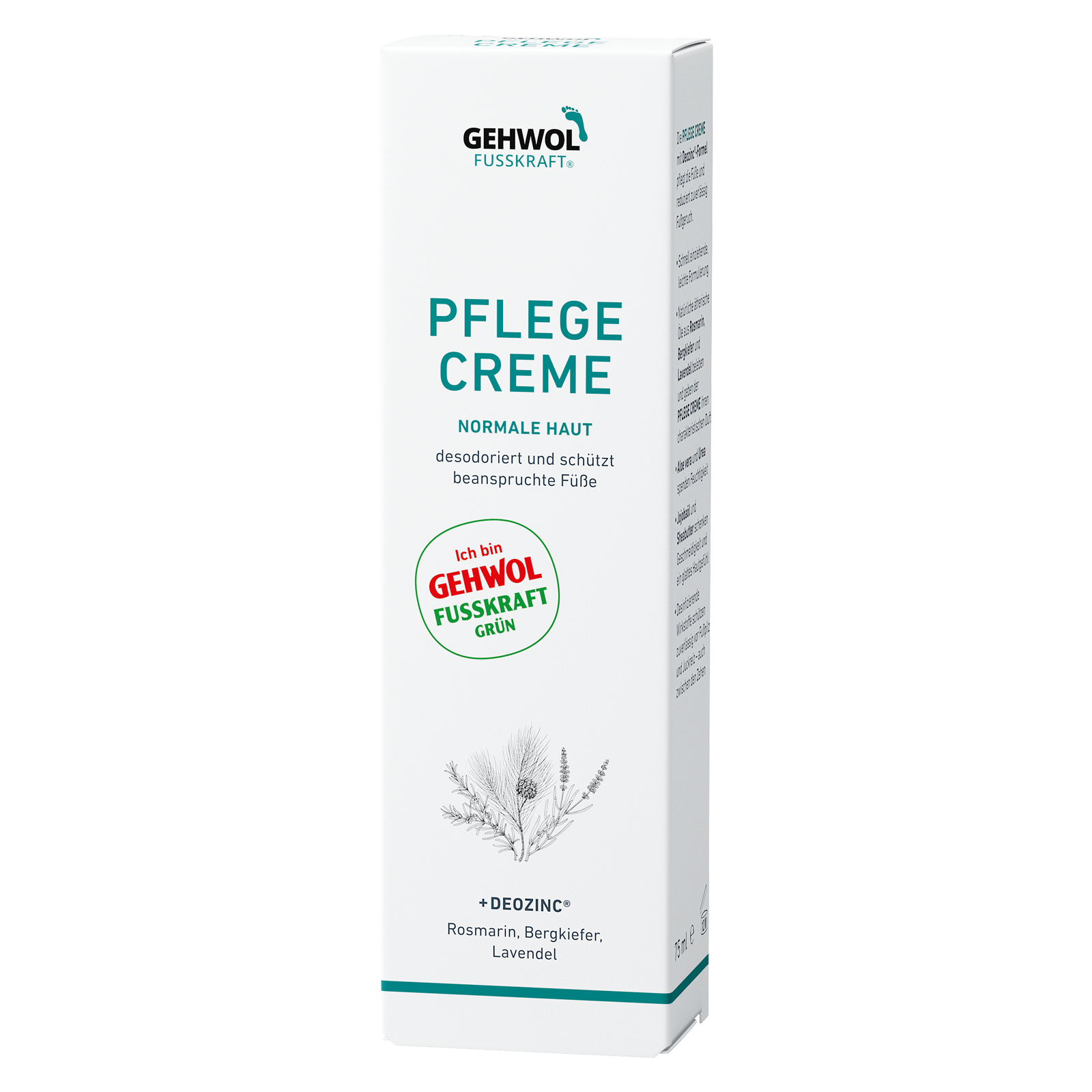 Die PFLEGE CREME mit Deozinc®-Formel reduziert zuverlässig Fußgeruch und sorgt für frische und gepflegte Füße. Sie enthält natürliche ätherische Öle aus Rosmarin, Bergkiefer und Lavendel, die einen wohltuenden Duft verströmen und die Haut beleben.