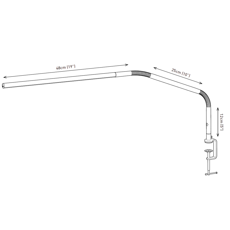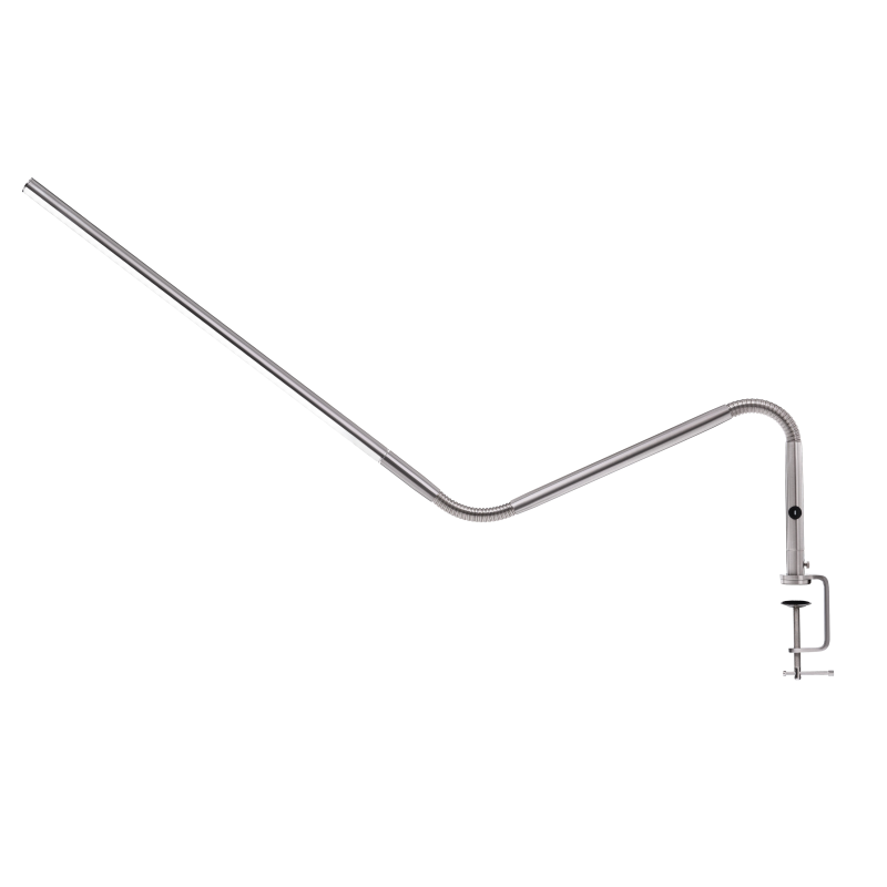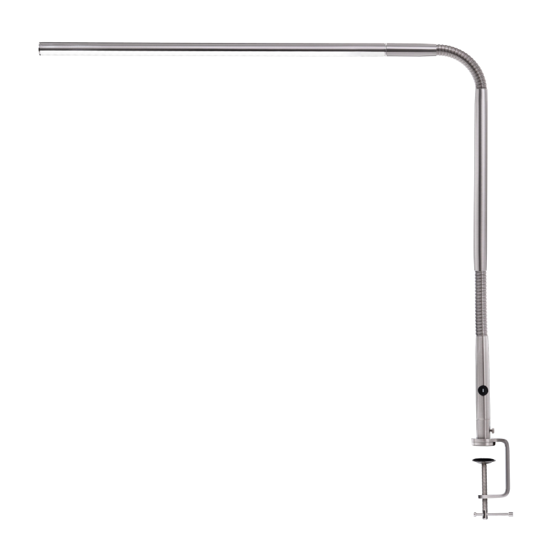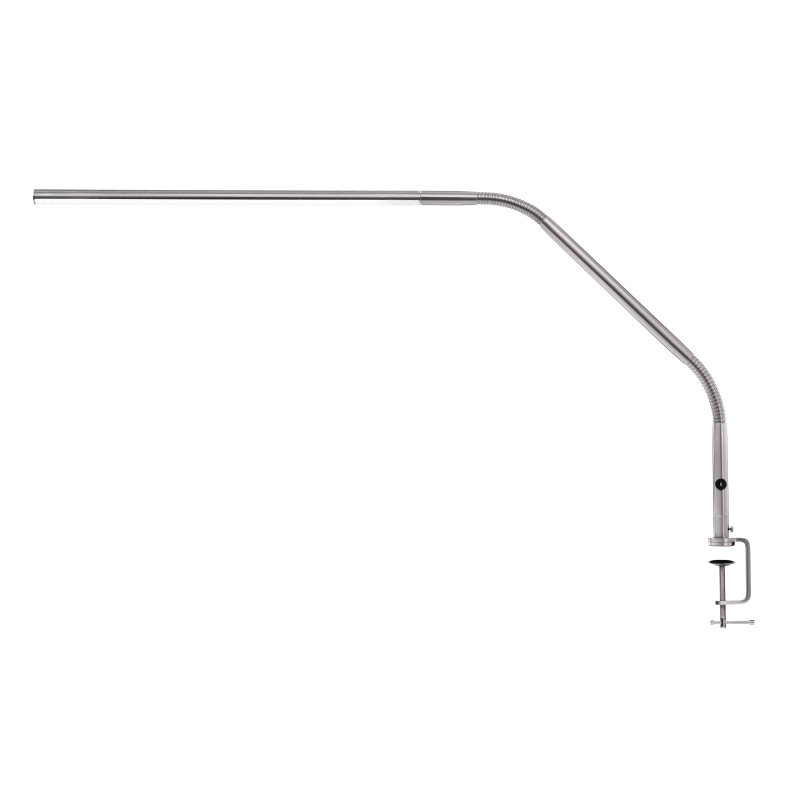 Die Leuchte ist Höhenverstellbar von 15 bis 55 cm und verfügt über einen schwenkbaren Arm mit 90 cm Reichweite, der eine flexible Ausrichtung des Lichts ermöglicht. Eine Metallklemme ist im Lieferumfang enthalten und ermöglicht eine einfache Befestigung an Tischen oder Arbeitsplatten. Für mehr Stabilität und eine individuelle Platzierung ist ein Slimline Tischfuß separat erhältlich - einfach anfragen.