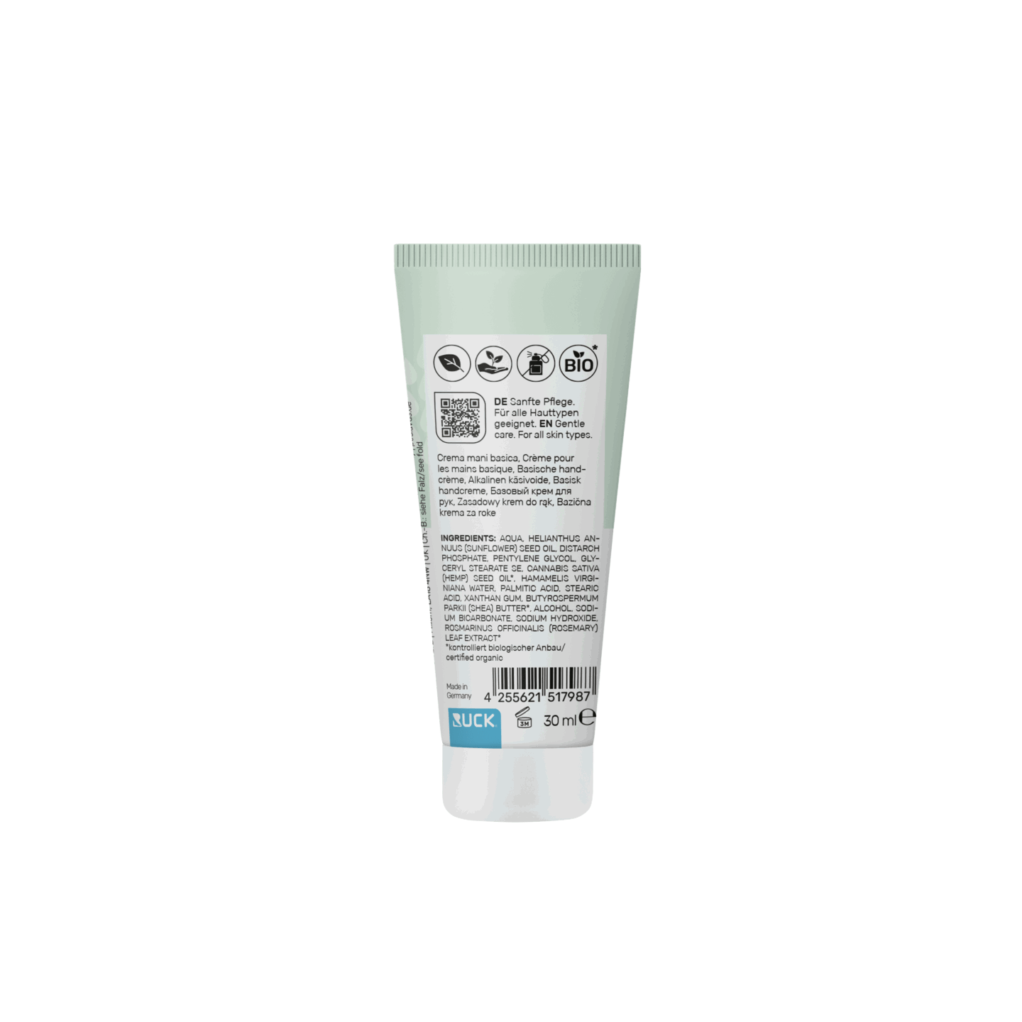- Hauptwirkstoffe: Bio-Rosmarinextrakt, Bio-Sheabutter, Hamamelisdestillat, Sonnenblumenkernöl, kaltgepresstes Bio-Hanfsaatöl