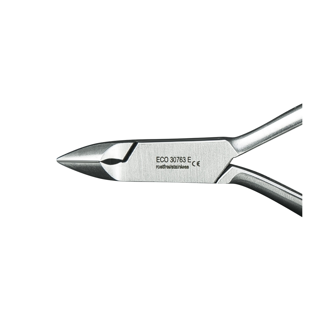 Die Zange ist aus rostfreiem Edelstahl gefertigt und verfügt über eine mattierte Oberfläche, die blendfreies Arbeiten ermöglicht. Die flache Form der Schneide ermöglicht ein besonders präzises Arbeiten. Die Zange ist robust und langlebig, was sie zu einem zuverlässigen Werkzeug für den professionellen Einsatz macht.