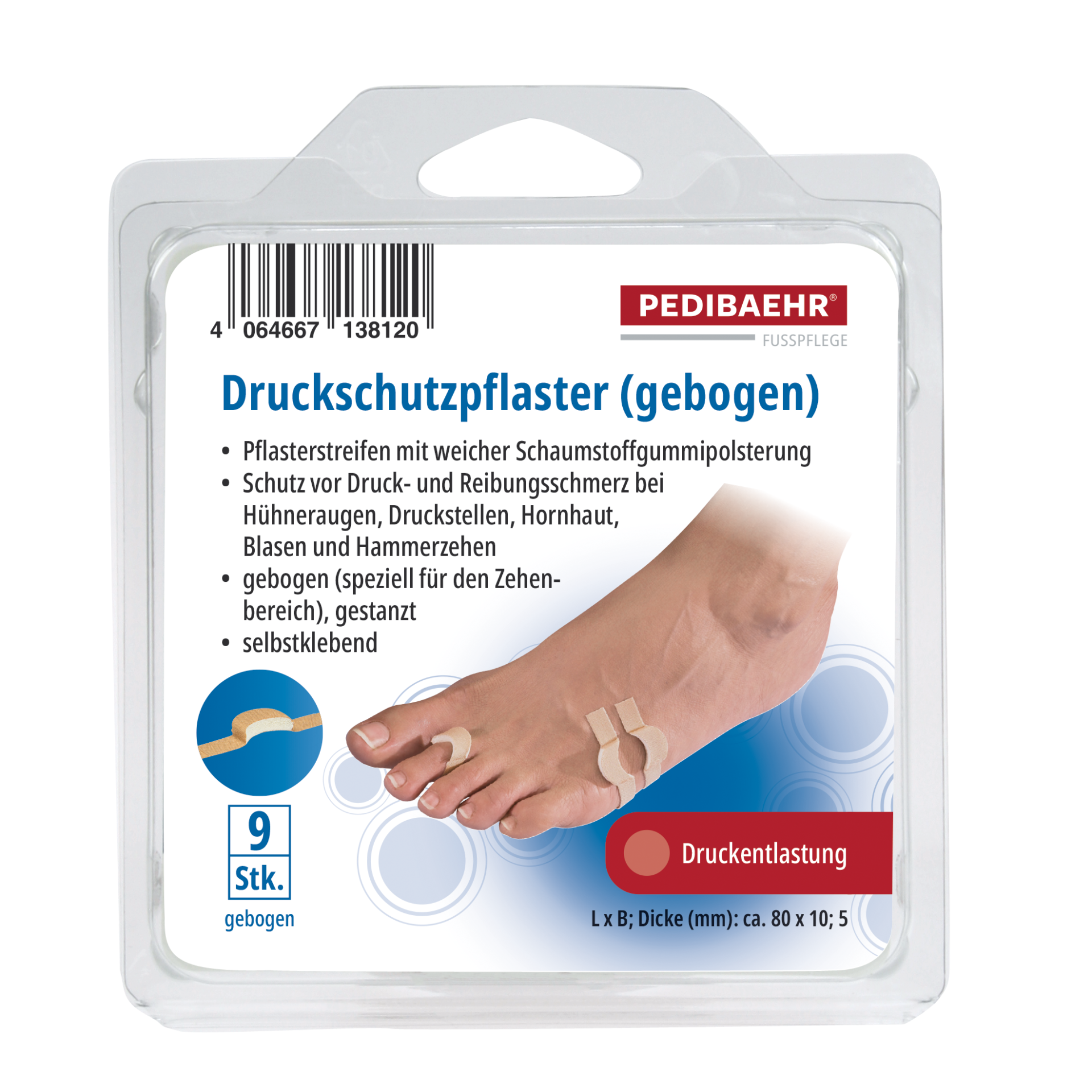 Produktinformationen "PEDIBAEHR Druckschutzpflaster gebogen, 1 Pack (9 Stk.)"