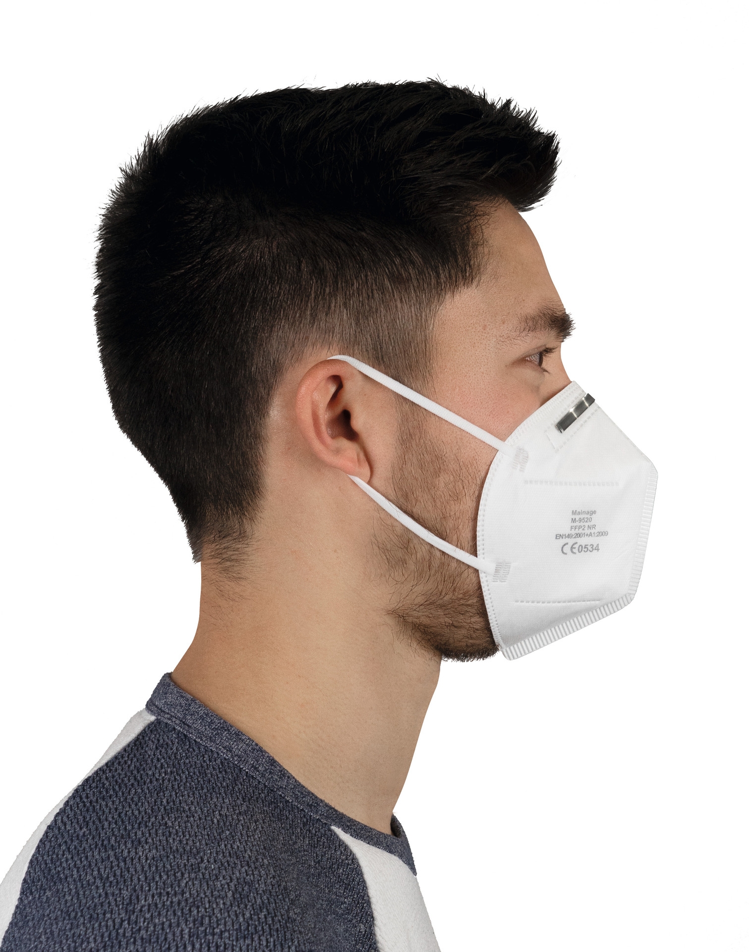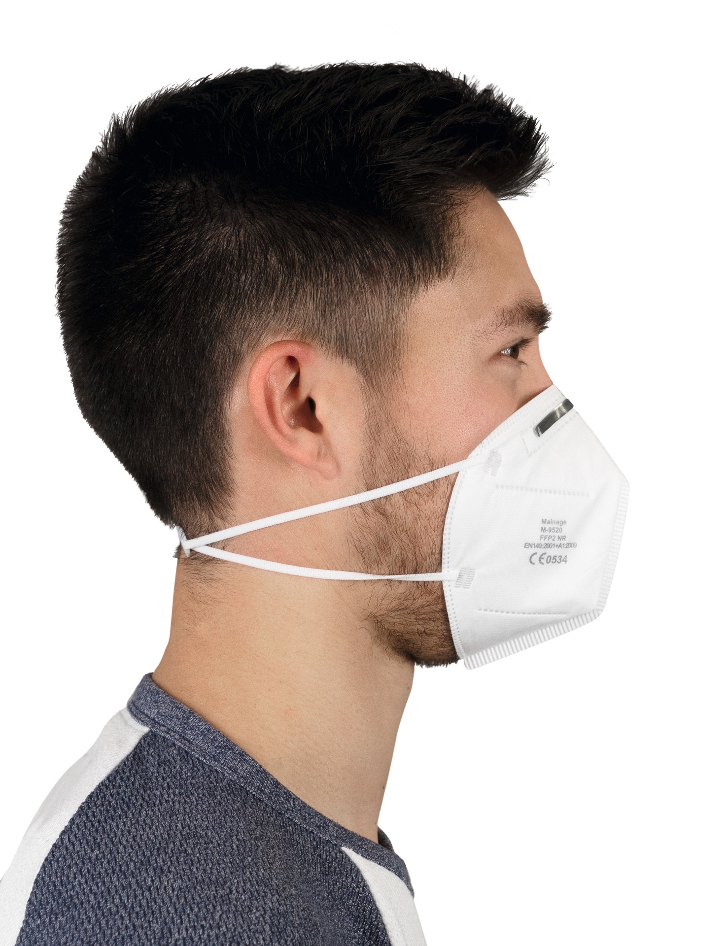 Die Maske besteht aus 4-lagigem Vliesstoff mit hoher Partikelfiltrationseffizienz (PFE) und gleichzeitig geringem Atemwiderstand.