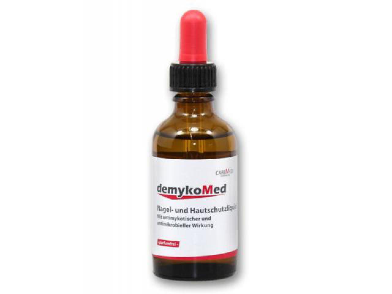 Das demykoMed Nagel- und Hautschutzliquid ist ein leistungsstarkes antimykotisches und antimikrobielles Produkt im Bereich der Fußpflege. Es wurde von der Firma CareMed Products speziell für die Pflege von Füßen, Zehenzwischenräumen und Fußnägeln entwickelt und trägt zur Geruchsverbesserung bei. Mit demykoMed Nagel- und Hautschutzliquid beugen Sie effektiv Fuß- und Nagelpilz vor.