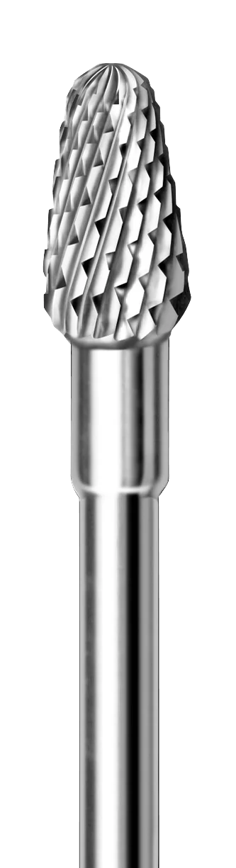 Der Fräser verfügt über eine mittlere X-Verzahnung, die optimale Ergebnisse von der groben Vorarbeit bis zur feinen Nachbearbeitung ermöglicht. Er ist besonders geeignet für die gezielte Konturierung von z.B. mykotischen Nägeln.