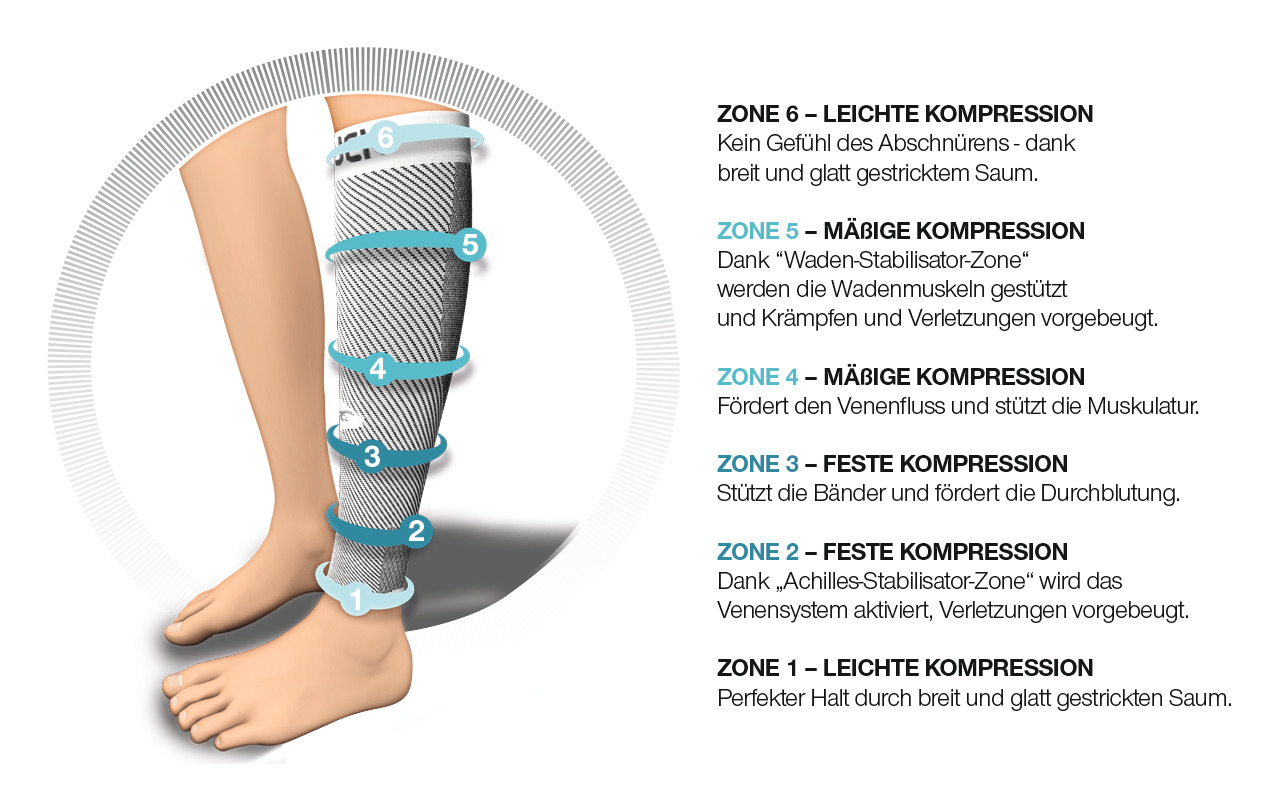 - Optimierter Blutfluss durch sechs unterschiedliche Kompressionszonen