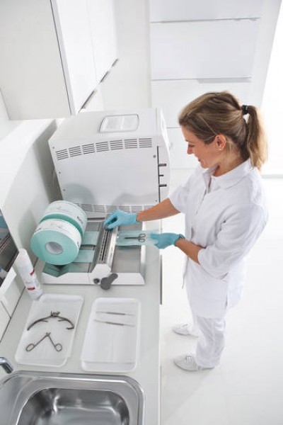 Der Sterilisationsprozess ist nur dann ein sicherer Schutz, wenn die Sterilität der Instrumente von der Sterilisation bis zur Nutzung erhalten bleibt. Der richtige Umgang mit medizinischen Instrumenten beginnt bereits vor dem Sterilisieren mit dem richtigen Verpackungsmaterial und dem fehlerfreien Verschließen der Sterilgutverpackung. Nur so können Sie eine Instrumentenaufbereitung gewährleisten, die Ihnen und Ihren Patienten ein Höchstmaß an Hygiene und Sicherheit bietet. Mit dem MELAseal Folienschweißgerät können Instrumente sicher eingeschweißt werden. Danach werden die verpackten Instrumente im Autoklaven sterilisiert und bleiben je nach Art der Lagerung bis zu 6 Monate steril.